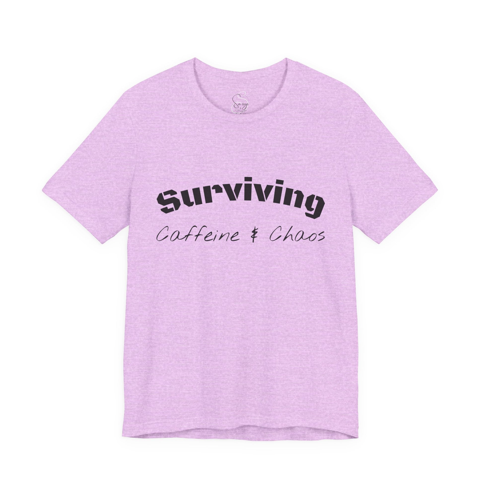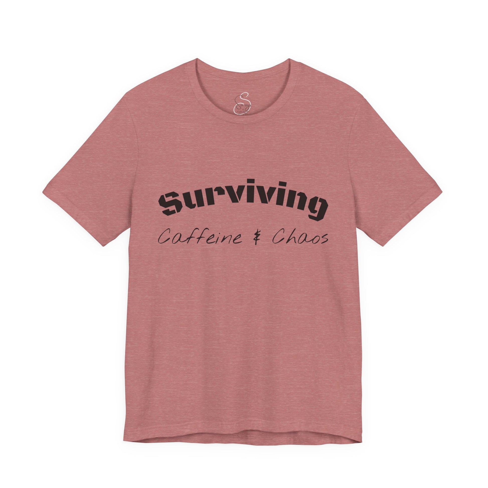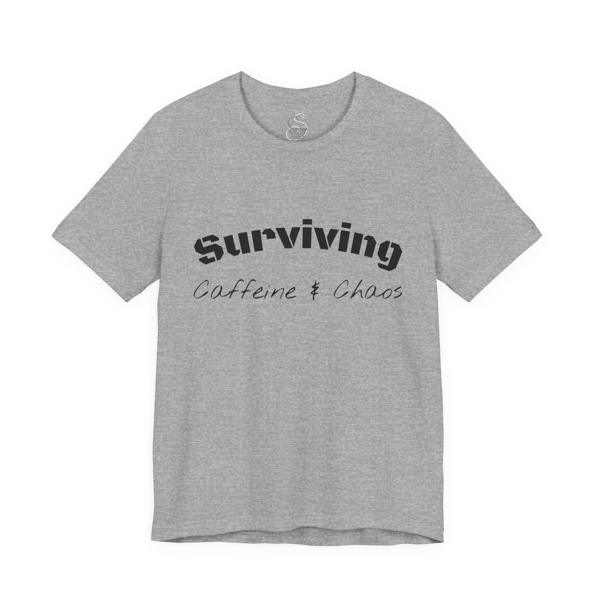A shirt for the busy moms that are barely surviving but thanks to caffeine, and the chaos of their lives, they thrive. Perfect for casual and comfortable settings, this lightweight and breathable tee is ideal for active and leisure wear. The classic crew neckline adds a neat style that's perfect for accessorizing. Relevant for Mother's Day, birthdays, and everyday wear for busy moms.